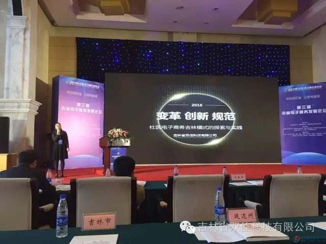 吉林省双佳科技有限公司在第三届电子商务发展论坛上与企业家们分享了《变革、创新、规范社区电子商务吉林模式》建设经验。
