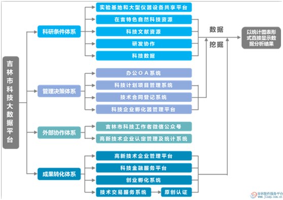 吉林市科技创新大数据平台以建设产学研协同创新体系、科技创新智慧化服务体系的建设工程来提升科技创新主体的服务能力,构建我市科技创新网络生态体系,实现以全民创业、企业创新,市场导向,产业发展为目标,产学研协同创新为支撑,政府引导市场化运作的科技创新投入产出不断循环升级的良性循环运作模式。