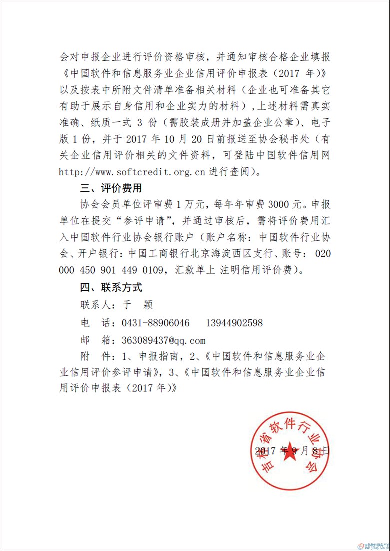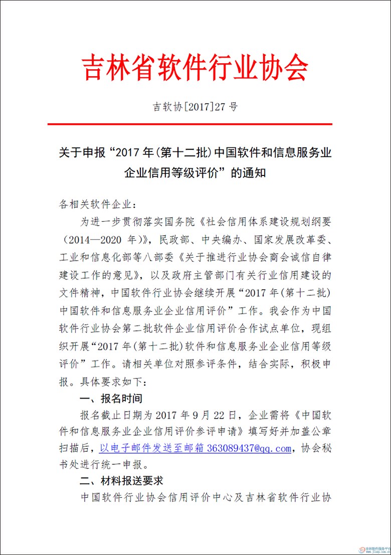 关于申报“2017年(第十二批)中国软件和信息服务业企业信用等级评价”的通知