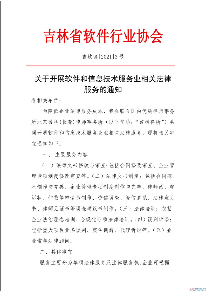 关于开展软件和信息技术服务业相关法律服务的通知